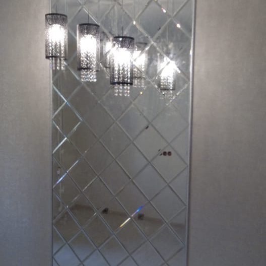 Использована зеркальная квадратная плитка с фацетом.